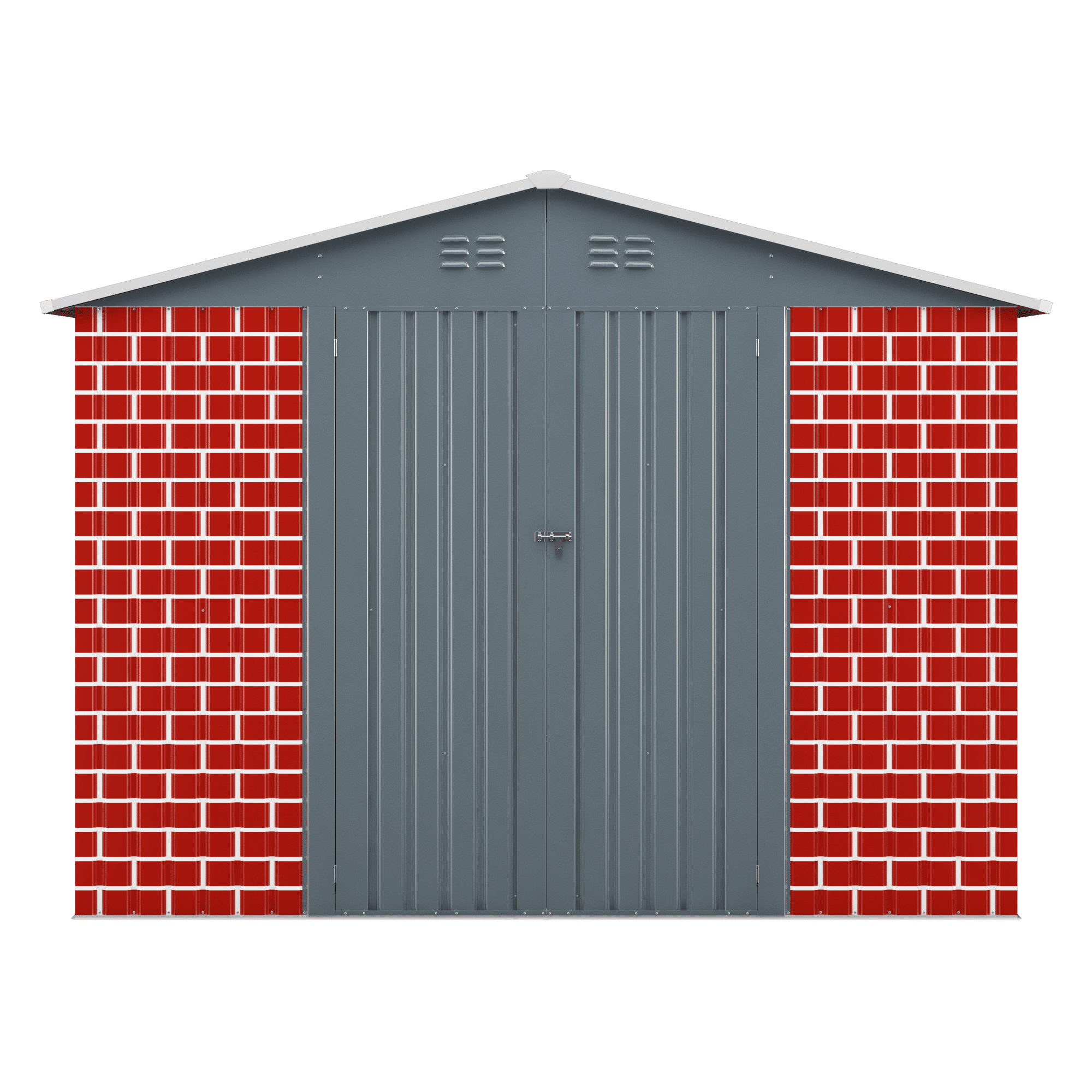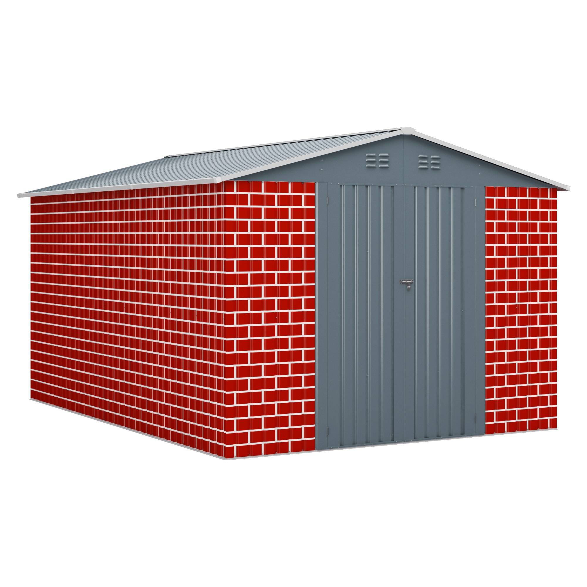 12 x 8 Ft Outdoor Storage Shed, Garden Tool Shed w/ Lockable Doors, Vents, Utility Metal Shed for Backyard Patio, All-Weather, Red Brick Style