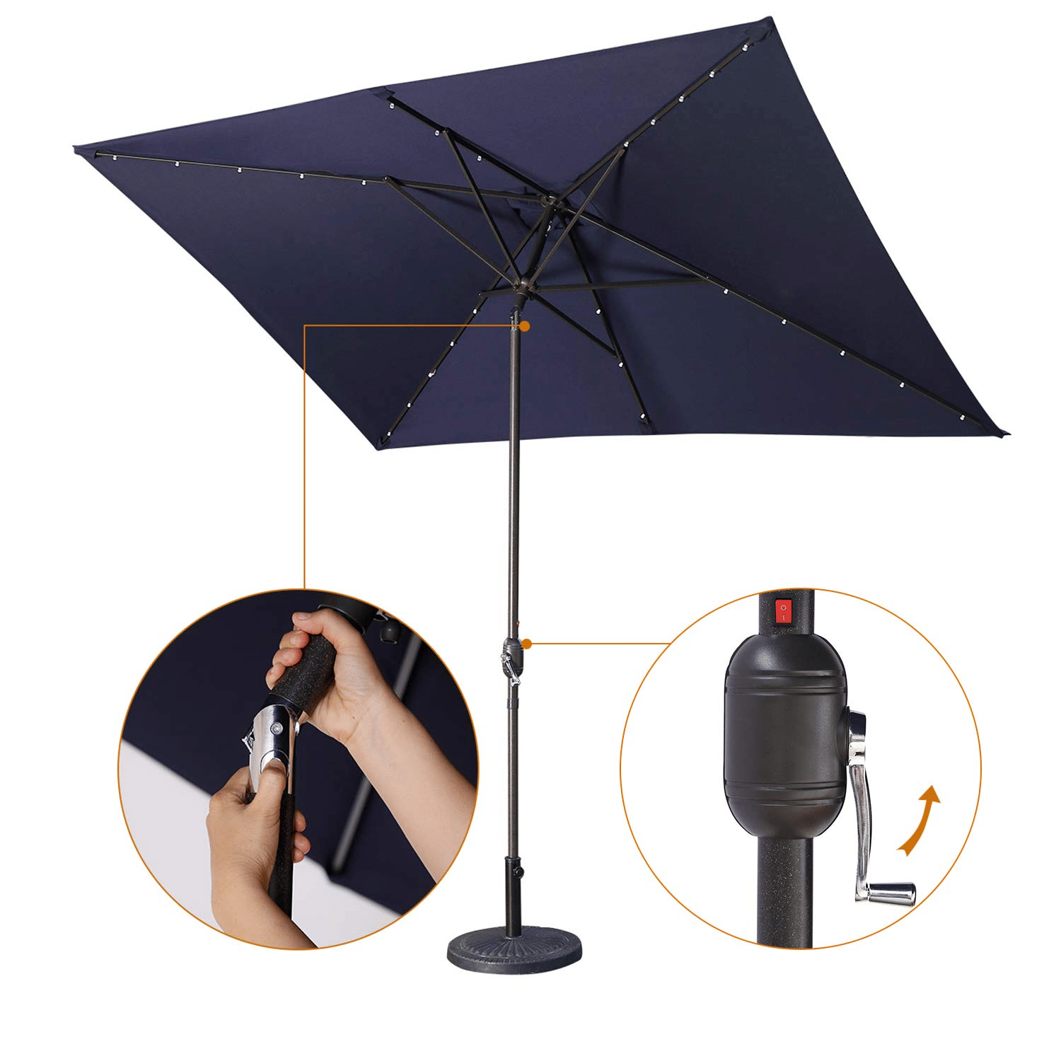 Stylish design, this rectangular patio umbrella is your best choice. Its colorful, waterproof polyester fabric provides 70 sq. ft. of sun protection, easily shading a table and chairs.