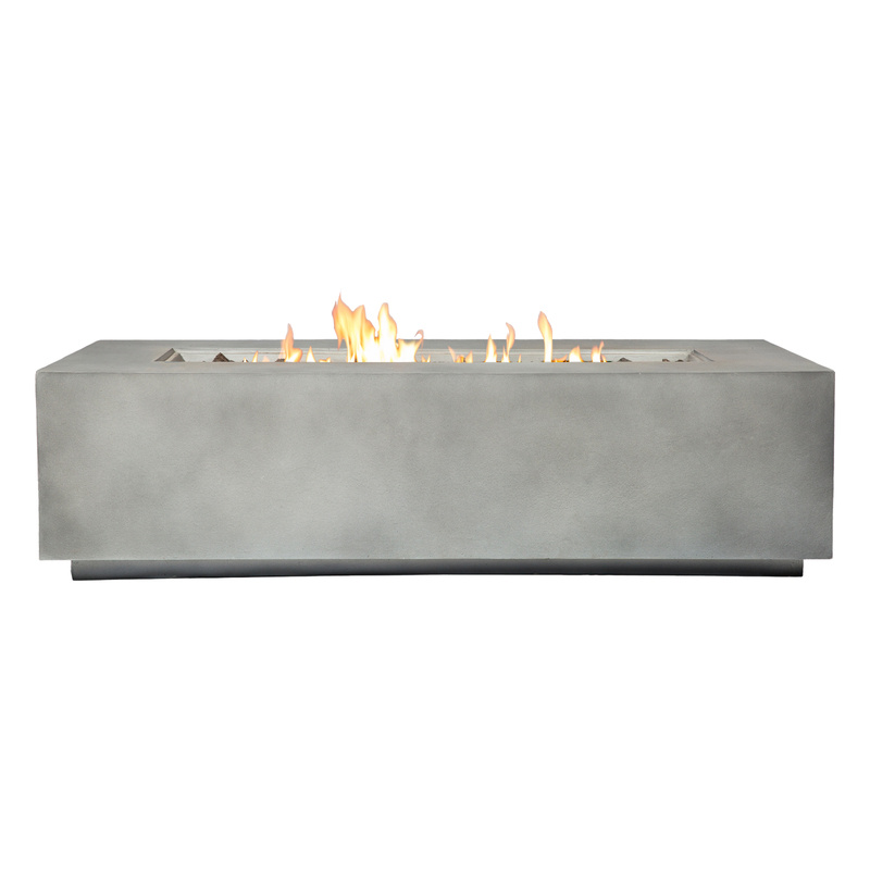 Bring warmth and style to your outdoor space with this sleek rectangular propane fire pit. Designed with a long, low-profile silhouette and crafted from weather-resistant reinforced concrete, it complements modern patios and decks. The minimalist design features clean lines and a block-style base, while the push-button ignition makes it easy to enjoy instant flames. It comes complete with lava rock filler and a protective cover, so it's ready to use out of the box.