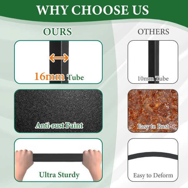 4. Sturdy, rustproof iron frame with powder coated finish lasts for years