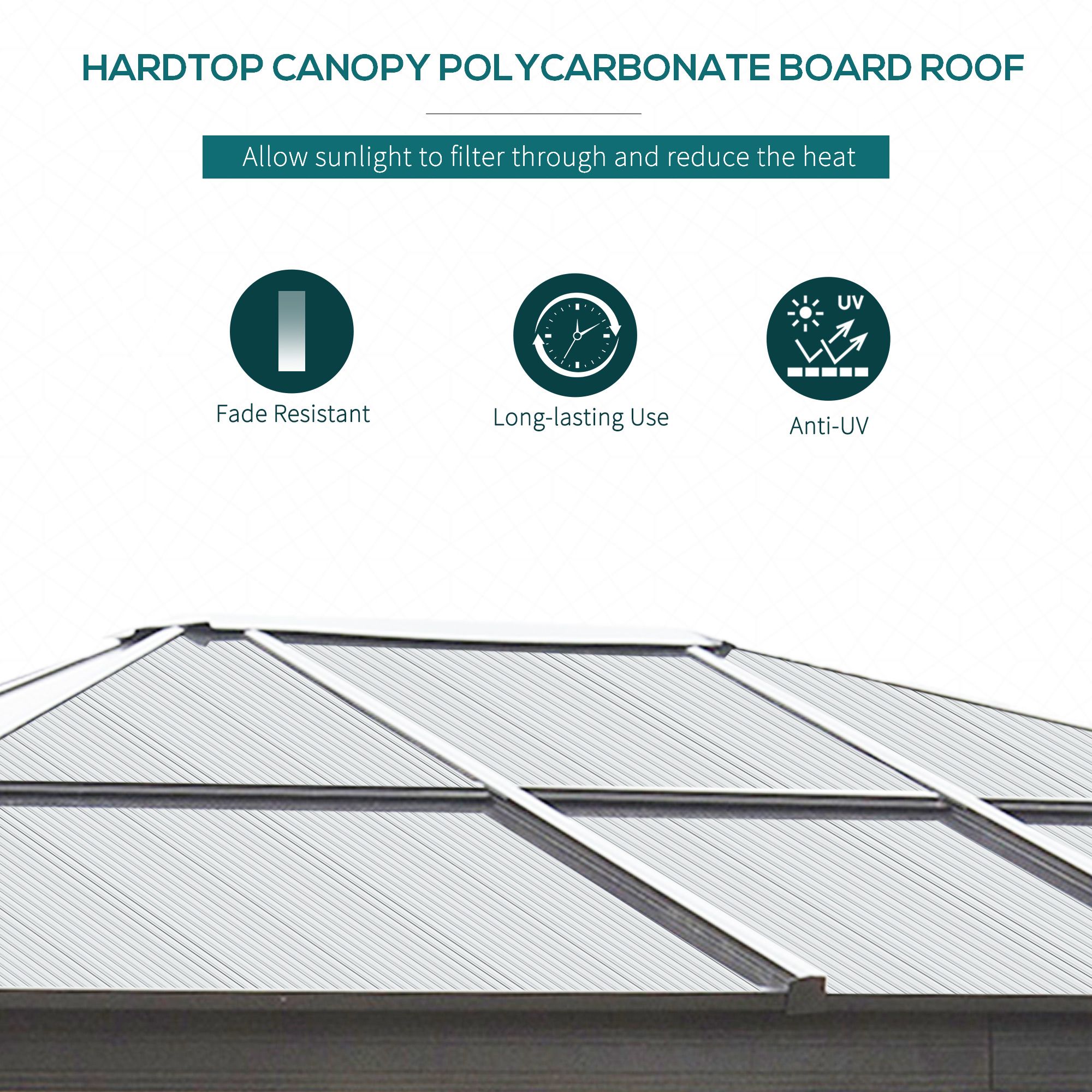 Solarium Style Polycarbonate Roof: Our 10x12 hardtop gazebo's non-corroding polycarbonate roof provides your patio furniture with needed shelter from UV radiation and adds a modern charm to any backyard.