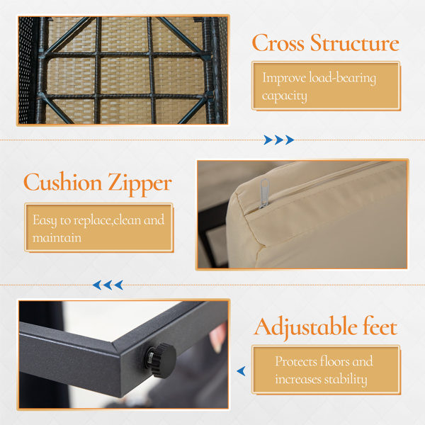 • STURDY & DURABLE MATERIAL: Our patio furniture set is made of premium PE rattan wicker and rust-resistant steel frame which are strong enough to withstand all weather variations; The seat and back cushion covers made of high-density fabric which is durable and anti-splashing