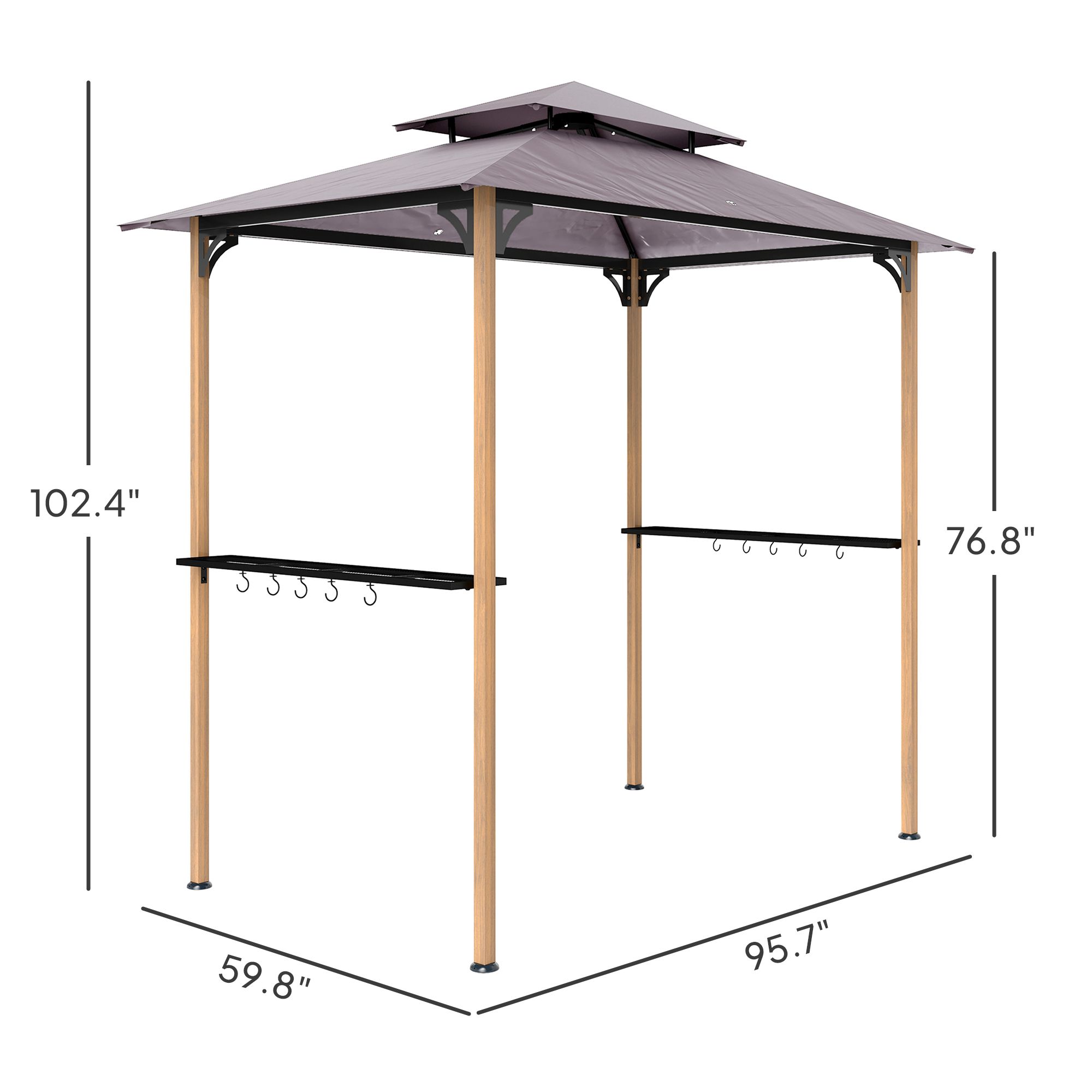Transform your backyard into a BBQ haven with the Outsunny Grill Gazebo! Its 8' x 5' size creates a spacious grill gazebo with shelves suitable for entertaining. Enjoy a cooler cooking experience with the double-layer canopy that vents heat and resists flames and UV. Plus, handy side shelves and hooks keep essentials close in this grill shelter.