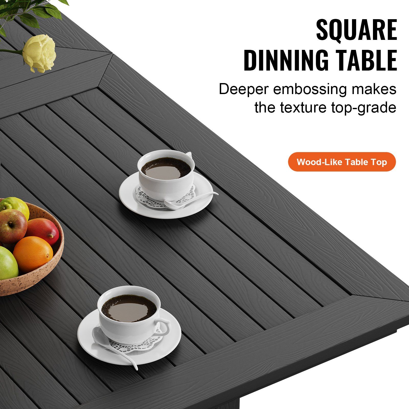 The table features a deeper embossing that enhances the texture, giving it a top-grade appearance. The wood-like table top adds a touch of elegance to your outdoor dining space.