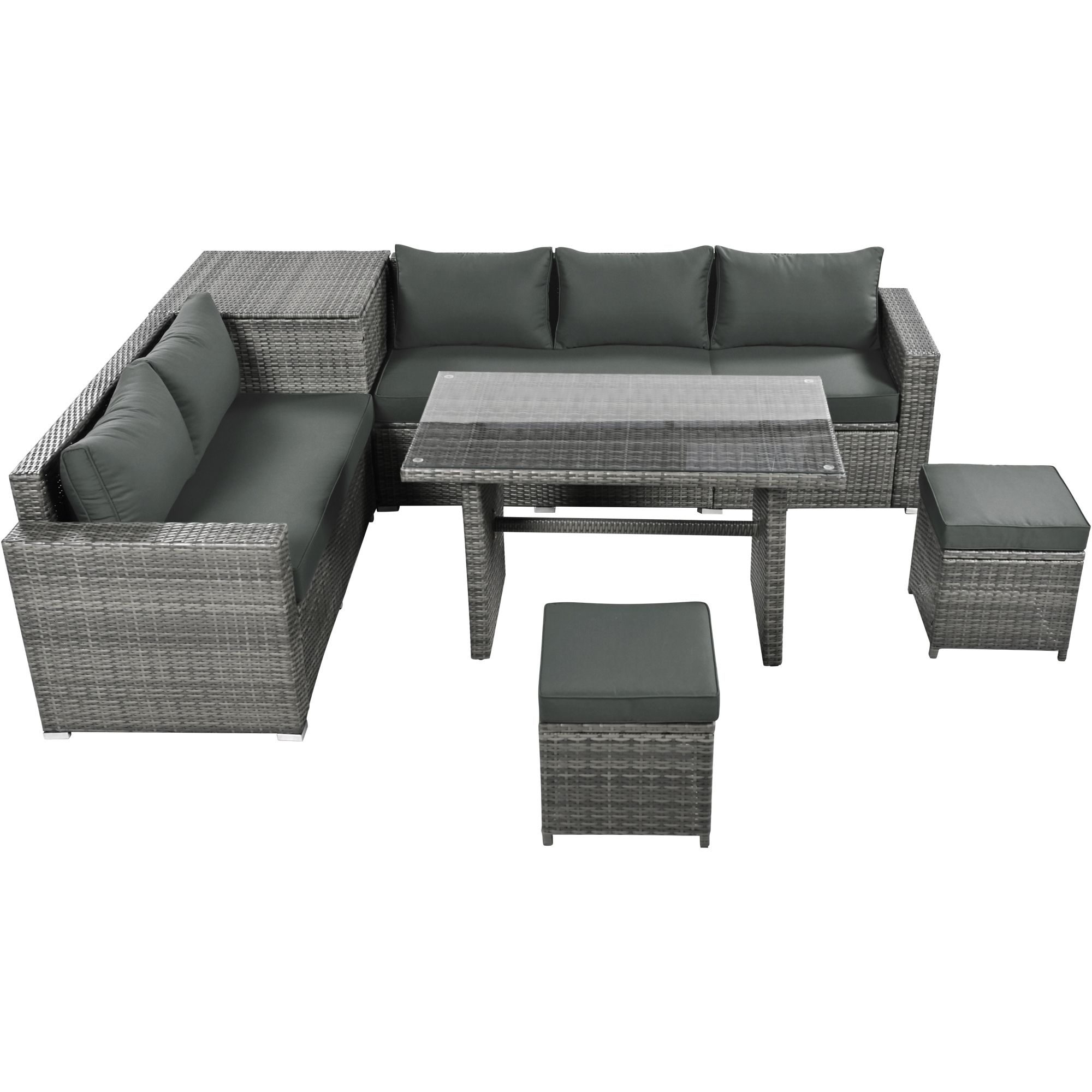 1*loveseat+1*3-seat sofa+1*storage box+1*table+2*stools+4*cushions+5*pillows