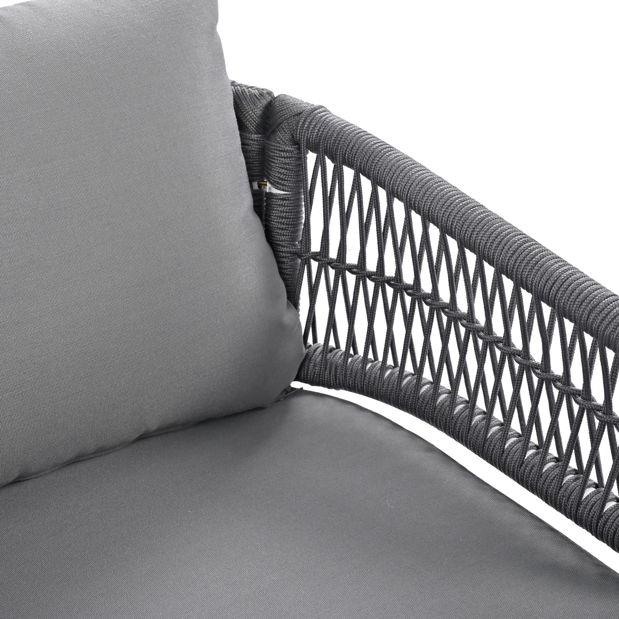 2.[Handmade Rope Weave] Our 4-piece boho patio furniture set is meticulously crafted from delicate PP rope, boasting a visually striking design and exceptional comfort. In comparison to conventional rattan materials, the thoughtfully engineered frame and rope are specifically designed to withstand even the harshest weather conditions. The handmade details of this material allow this set to blend seamlessly with your outdoor decor.