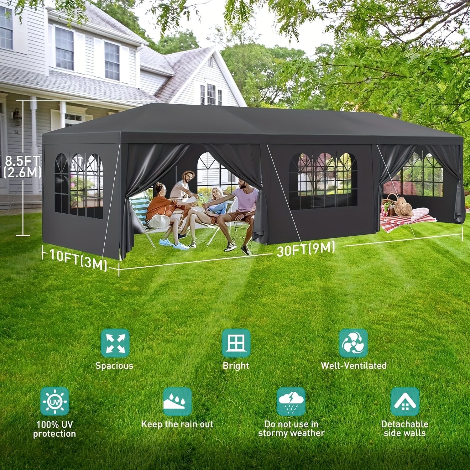 1 Set of 10'x30' Party Tent Canopy for Outdoor Weddings, Heavy-Duty Waterproof Event Shelter with Removable Sidewalls, Ideal for Parties, Booths