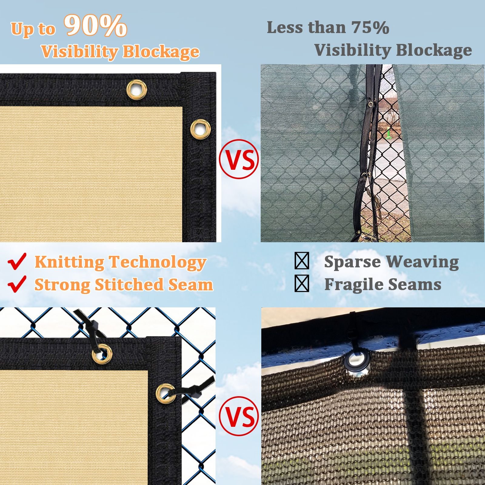 3.Strong & Durable: The Artpuch fence privacy screen boasts reinforced edges with double support on each side, complemented by anti-rust brass grommets. Count on long-lasting performance and tear resistance, ensuring your privacy solution stands the test of time. Enjoy peace of mind with the Artpuch fence privacy screen's enhanced durability.