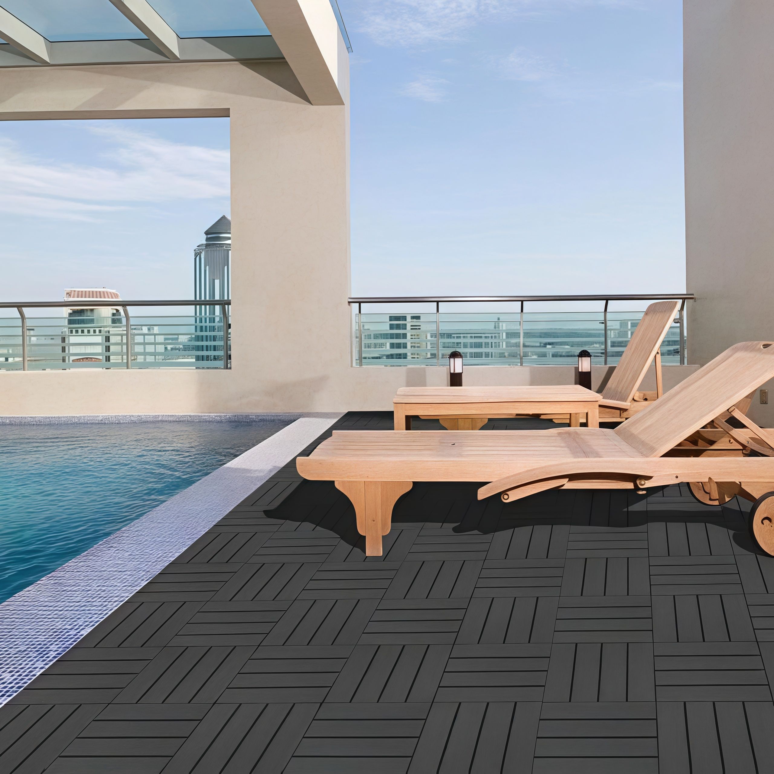 1.Easy to Install: These deck flooring tiles have an interlocking design base for easy do-it-yourself installation and no tools required for installation.No messy glue, no nails, perfect match and precision spacing between every tile.