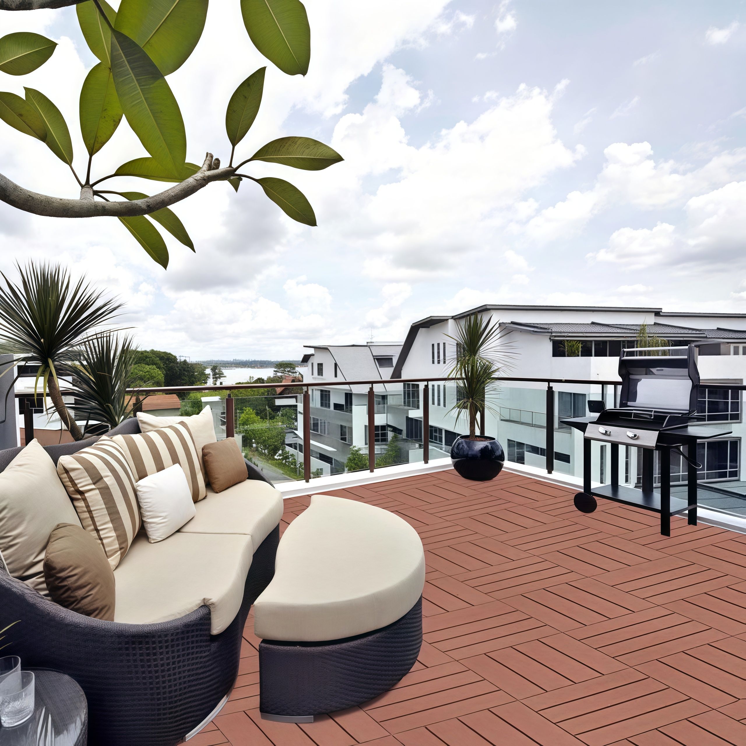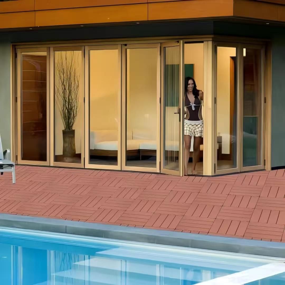 1.Easy to Install: These deck flooring tiles have an interlocking design base for easy do-it-yourself installation and no tools required for installation.No messy glue, no nails, perfect match and precision spacing between every tile.