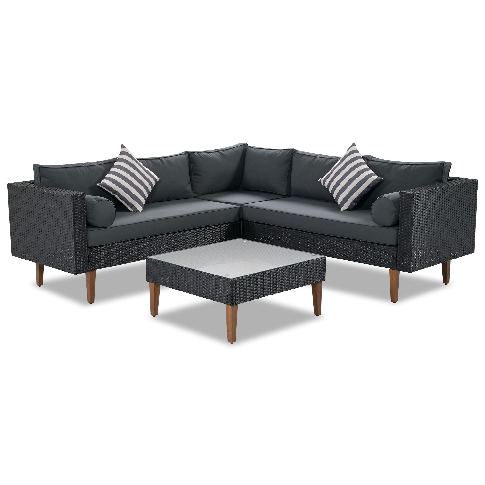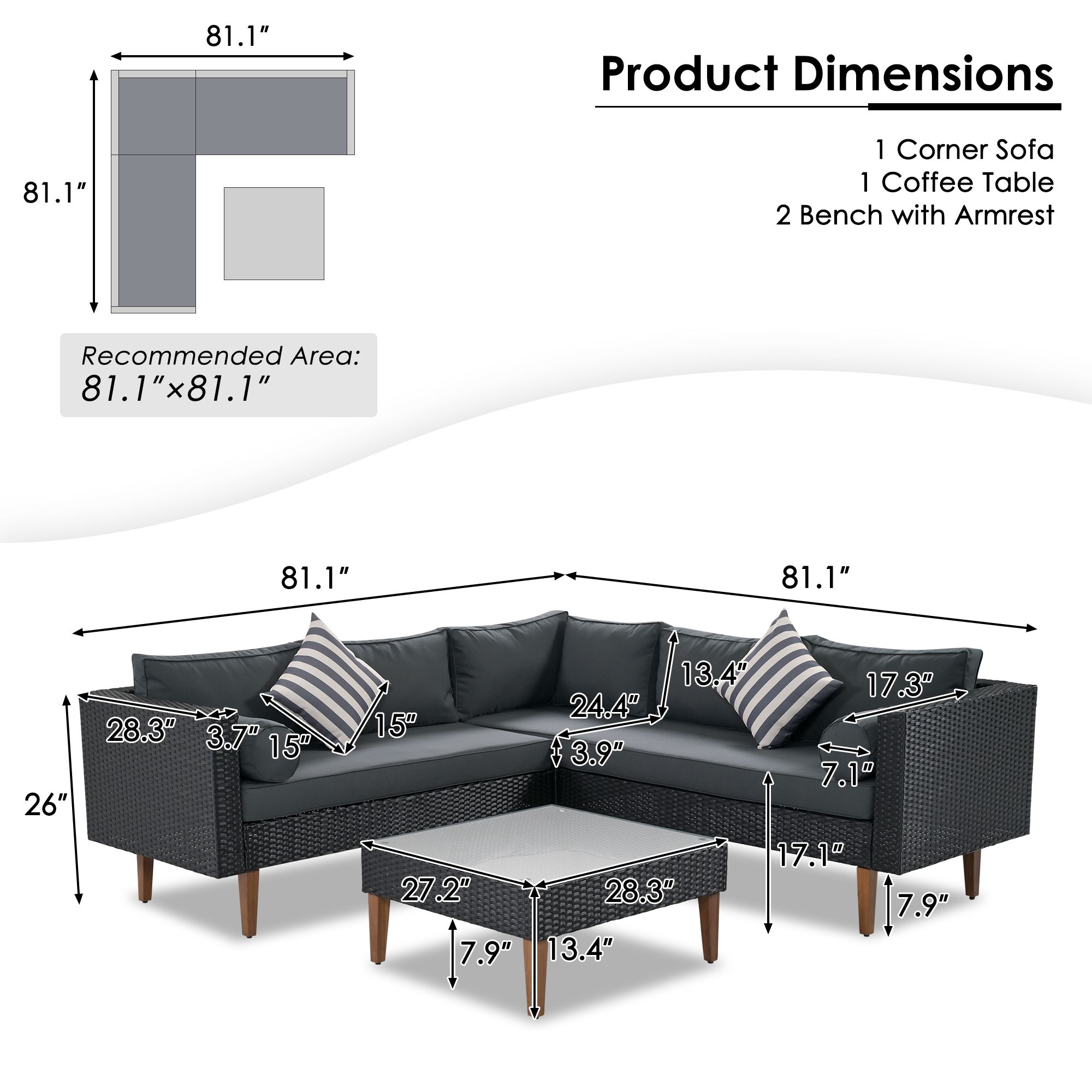 4-pieces Outdoor Wicker Sofa Set; Patio Furniture with Colorful Pillows; L-shape sofa set