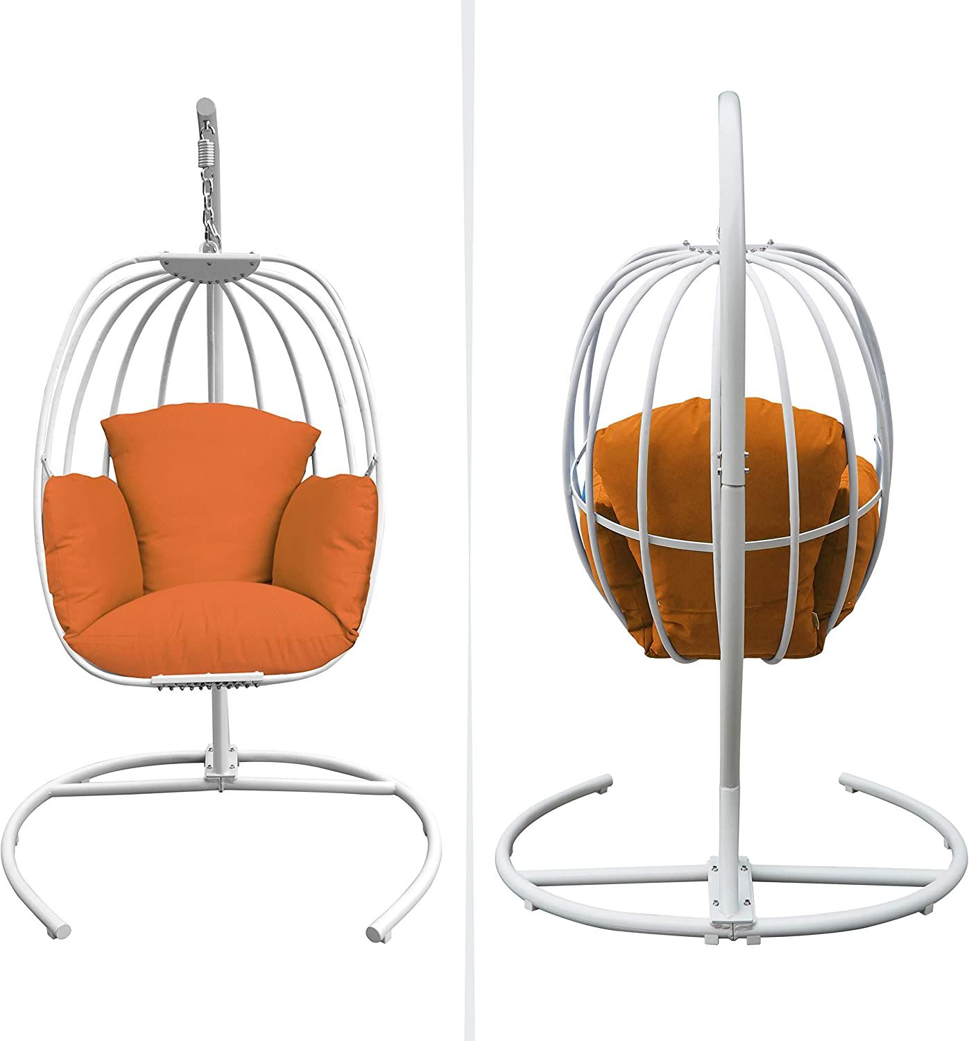 The hanging swing chair made with aluminum in white and plush all-weather fabric cushion; making it easy to immerse yourself in a good relax. Comes with a sturdy powder-coated aluminum frame and hanging chain apparatus that works well to enliven your patio; backyard; porch; or poolside decor. The hanging egg hammock chair are also popularly used in indoor lounge; living; or bedroom spaces. Also a awesome gift for family and friends.